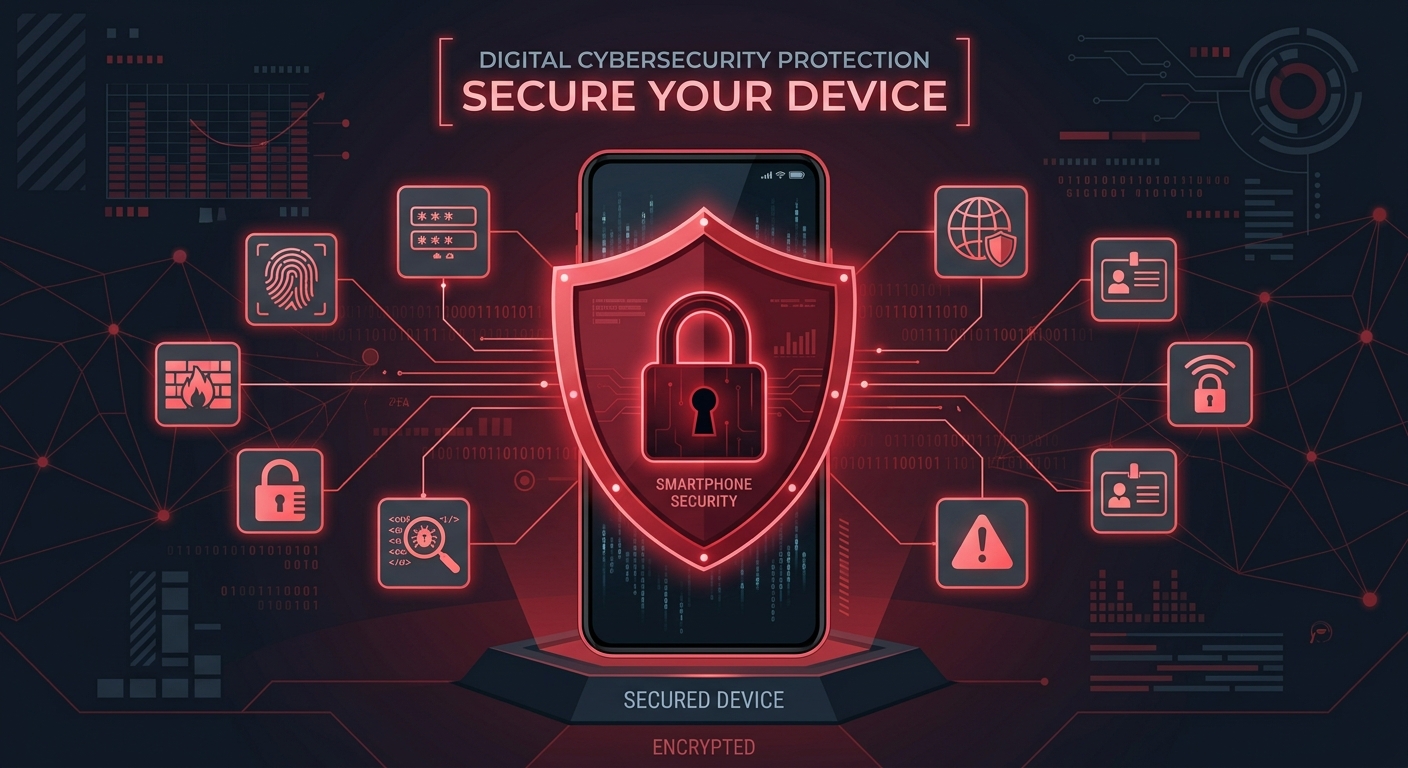 Guide complet 2026 pour sécuriser votre smartphone Android ou iOS : 15 mesures essentielles incluant verrouillage biométrique, antivirus mobile, VPN, authentification à deux facteurs et protection contre le phishing.